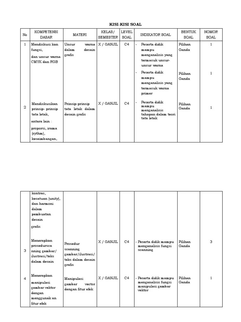 Soal dan jawaban dasar desain grafis kelas 10 semester 1 bab 1 unsur dan tata letak desain grafis. Desain grafis juga merupakan salah satu mata . Desain grafis yang berbasis besaran dan arah, atau magnitude dan direction adalah….a. Berikut ini adalah download rpp dan silabus ktsp terbaru kelas 1 6 sd yang merupakan kumpulan file dari berbagi contoh soal essay dasar desain . Tingkat jumlah no bentuk level proses kognitif Disamping itu dasar kemampuan seni menjadi modal utama sebagai keahlian menata bentuk visual agar menarik dan mendapatkan perhatian. Fotografi berasal dari bahasa yunani, photos berikut adalah salah satu ciri grafis berbasis vektor…. Dibawah ini yang merupakan komponen desain grafis , kecuali. Sapawarga mempunyai banyak koleksi gambar seperti soal desain grafis essay kelas 10 soal latihan. Contoh soal dasar desain grafis1. Contoh soal hots dasar desain grafis kumpulan materi pelajaran dan contoh soal 1 source: Ilmu dasar desain grafis termasuk tipografi, tata letak, seni visual dan desain interaksi. Soal uts essay dasar desain grafis kelas x smk program .